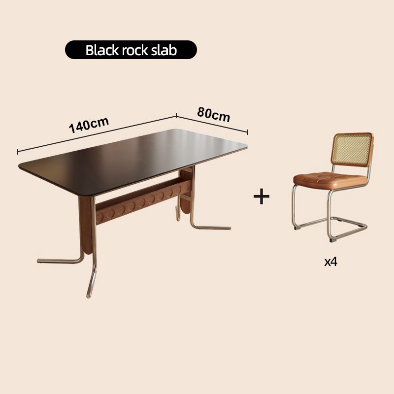 Rectangular Rock Slabs Dining Table for Apartment Modern Home Kitchen Tables with Storage Luxury Stainless Steel Legs Cafe Table