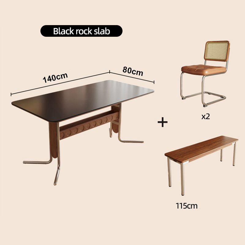 Rectangular Rock Slabs Dining Table for Apartment Modern Home Kitchen Tables with Storage Luxury Stainless Steel Legs Cafe Table