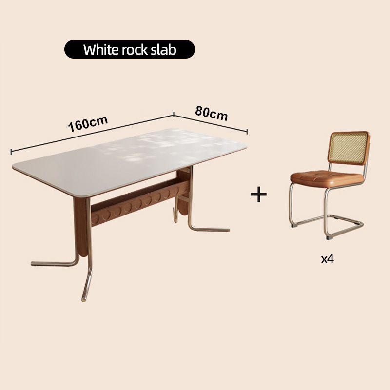 Rectangular Rock Slabs Dining Table for Apartment Modern Home Kitchen Tables with Storage Luxury Stainless Steel Legs Cafe Table
