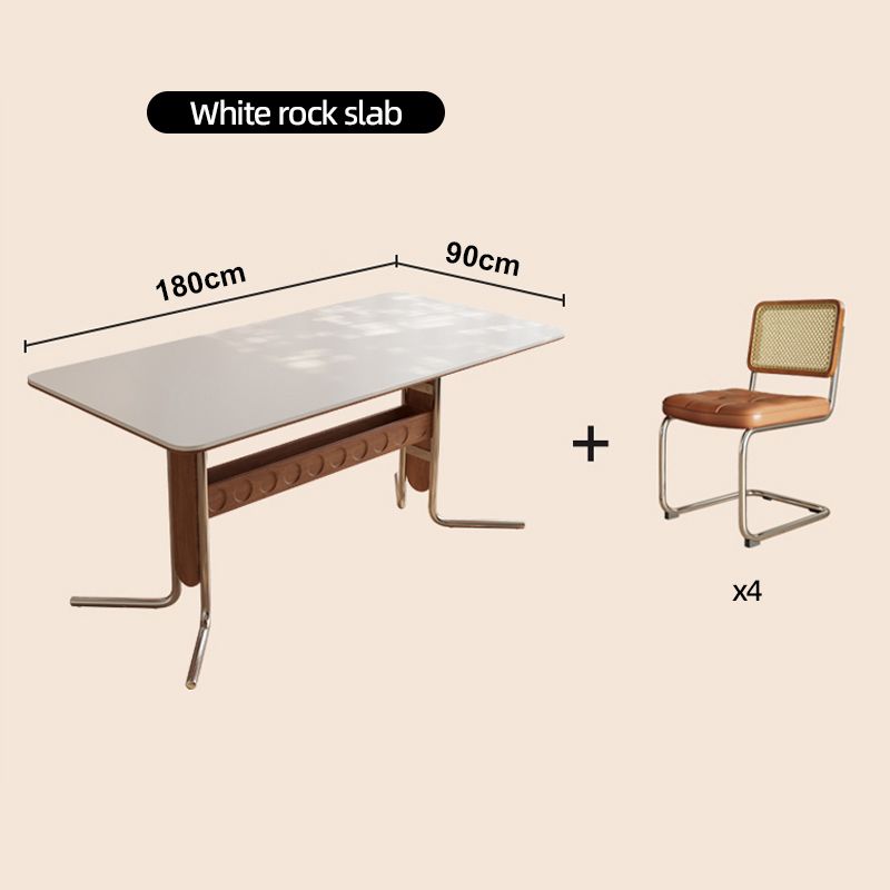 Rectangular Rock Slabs Dining Table for Apartment Modern Home Kitchen Tables with Storage Luxury Stainless Steel Legs Cafe Table