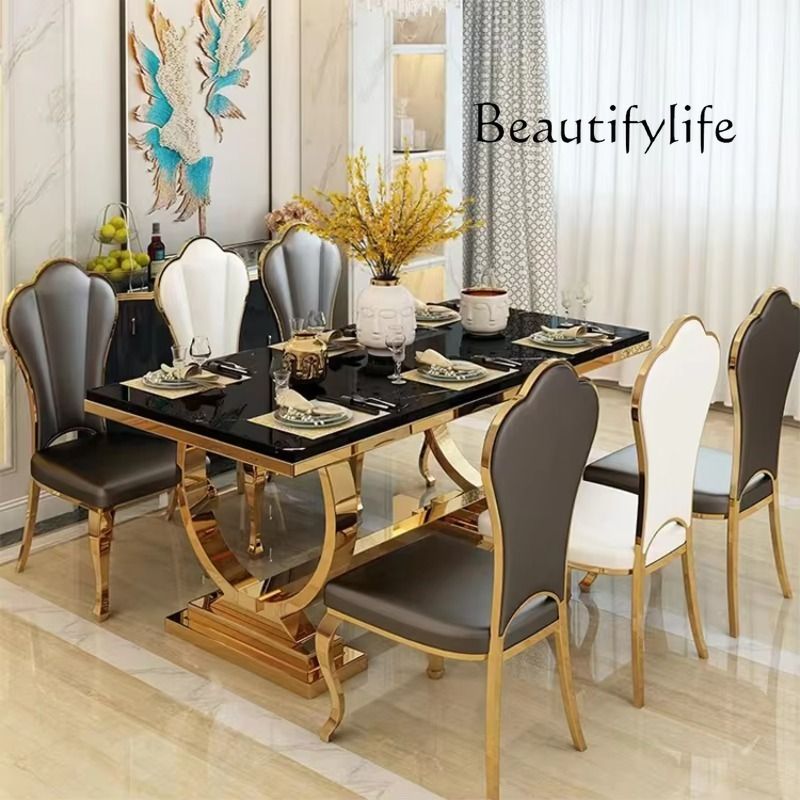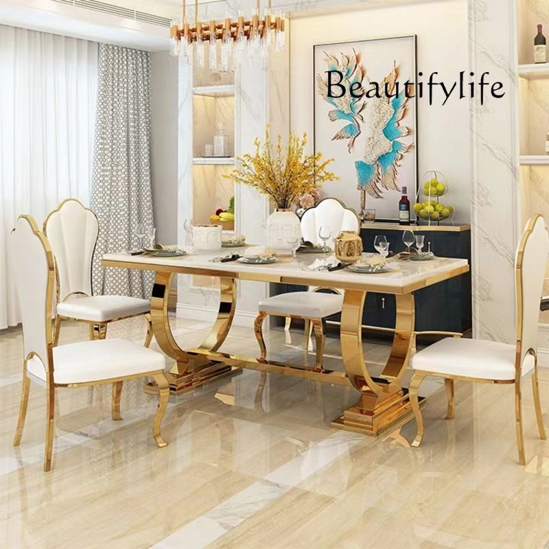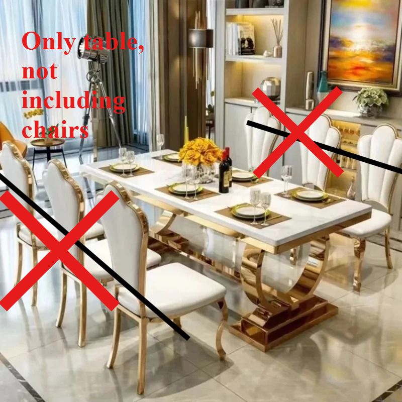 Luxury Restaurant Restaurant Gold White Stainless Steel Marble Glass Dining Table ,only Dining Table , no chair