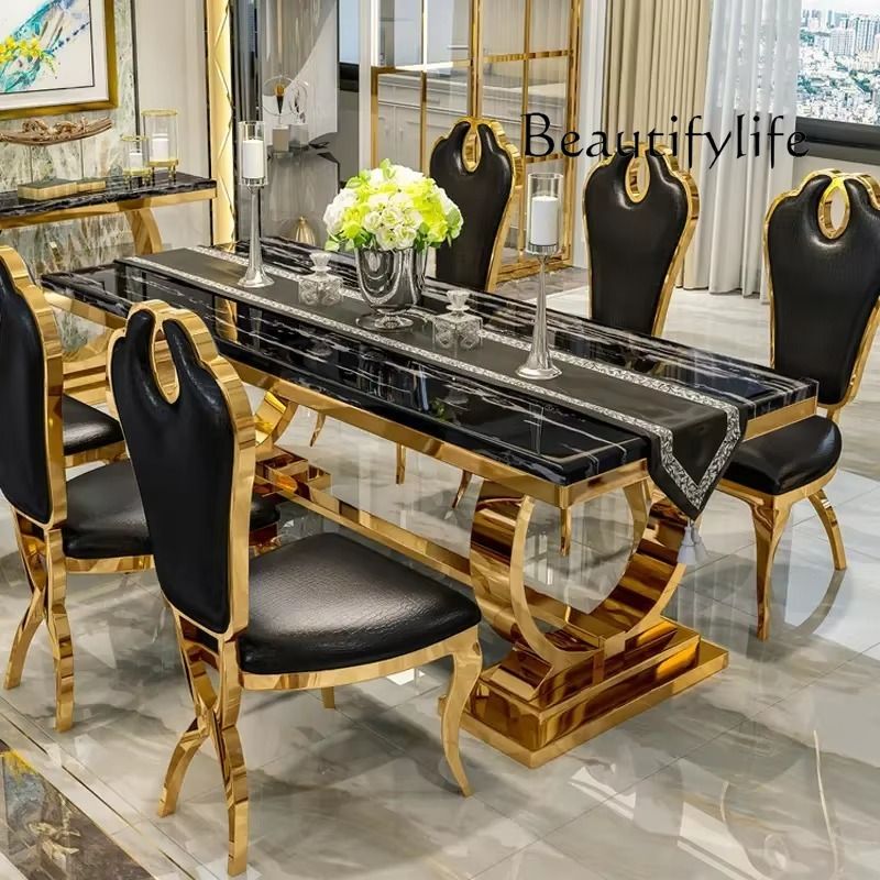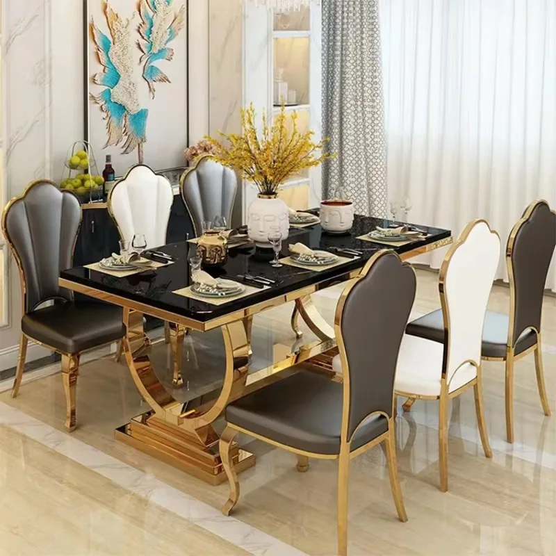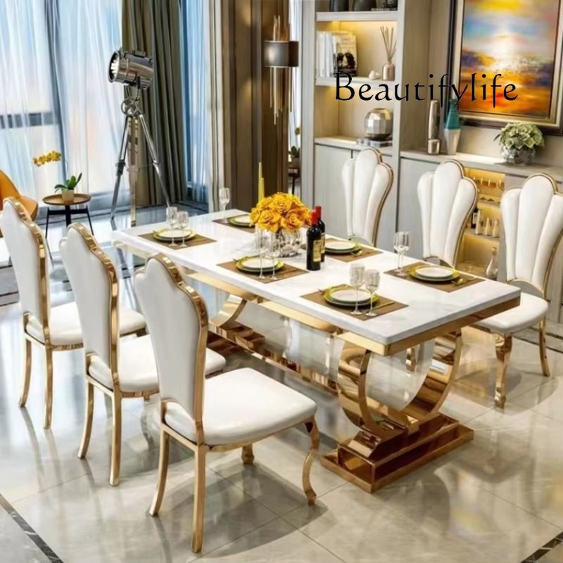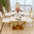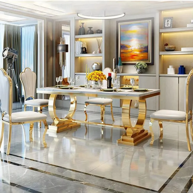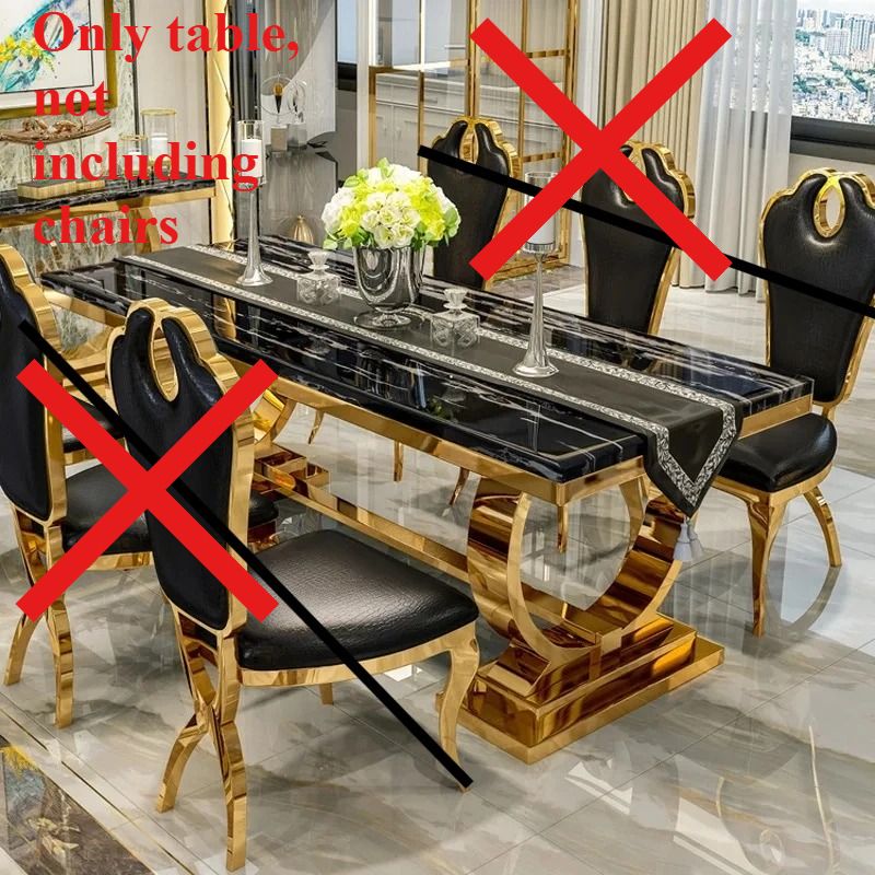 Luxury Restaurant Restaurant Gold White Stainless Steel Marble Glass Dining Table ,only Dining Table , no chair