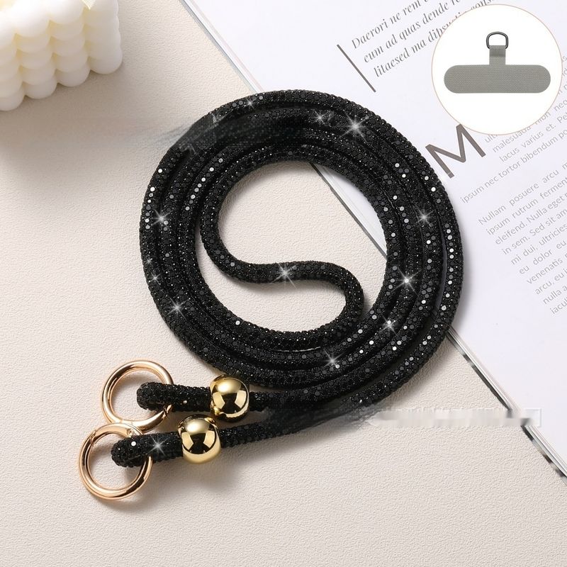 Luxury Rhinestone Mobile Phone Lanyard Black Crossbody