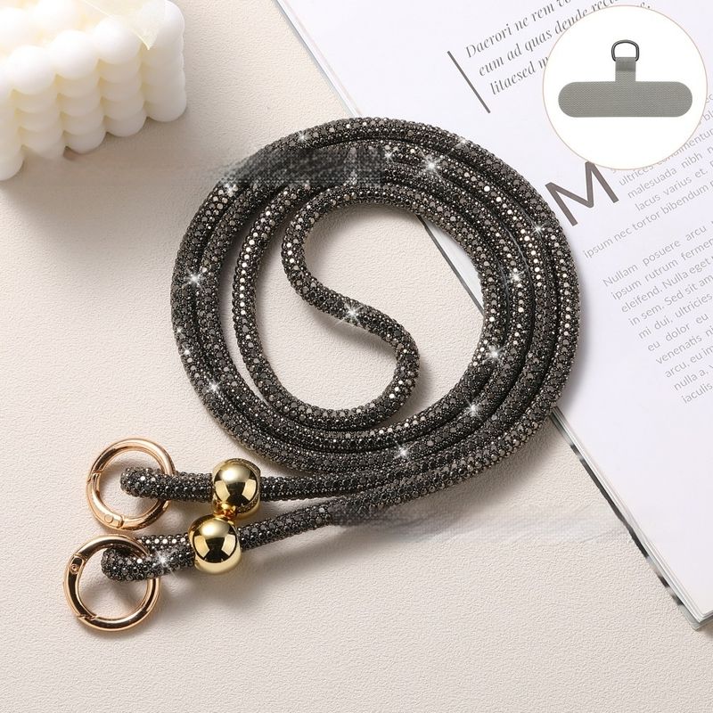 Luxury Rhinestone Mobile Phone Lanyard Gray Crossbody