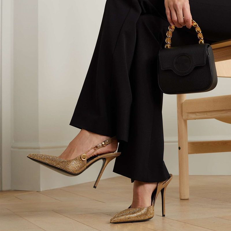 Luxury Rhinestones Sequined Buckle Women Pumps Elegant Pointed toe Slingbacks Stiletto High heels Spring Summer Fashion Shoes