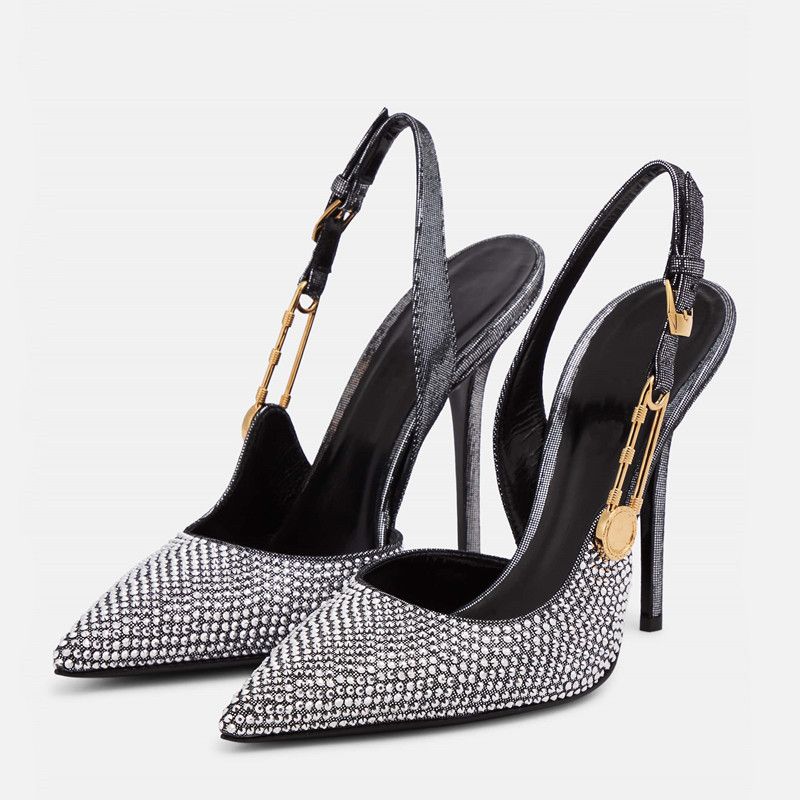 Luxury Rhinestones Sequined Buckle Women Pumps Elegant Pointed toe Slingbacks Stiletto High heels Spring Summer Fashion Shoes