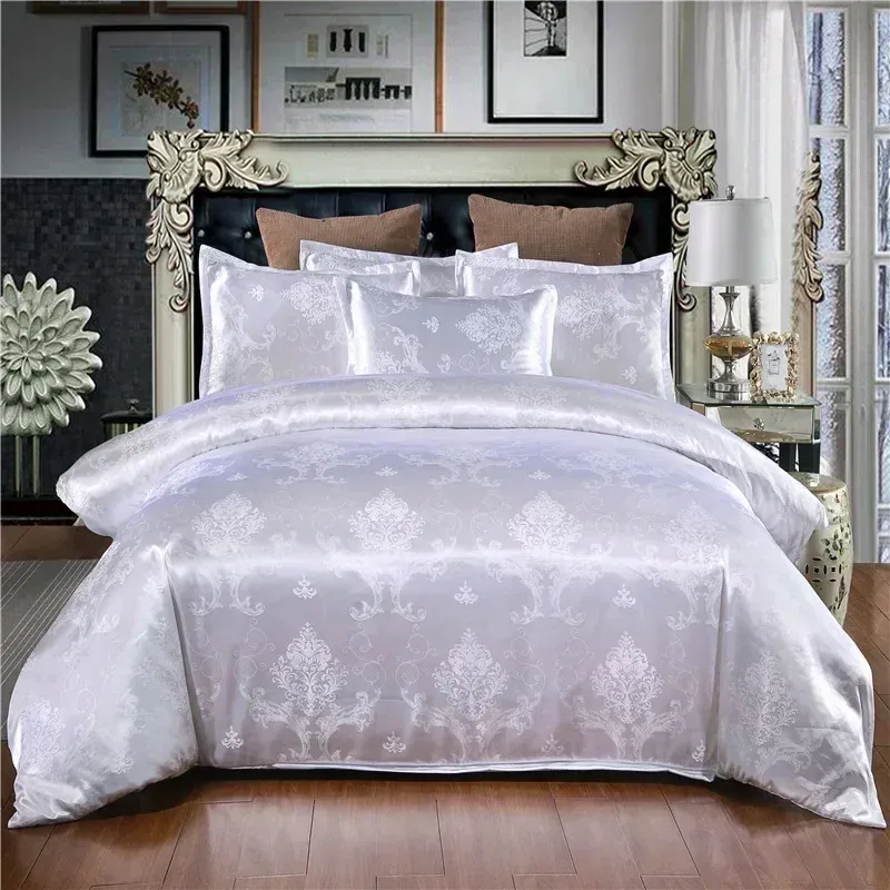 Luxury Satin Jacquard Single Double Duvet Cover Set High End European Wedding King Size Bedding Set Queen Size Quilt Cover Set