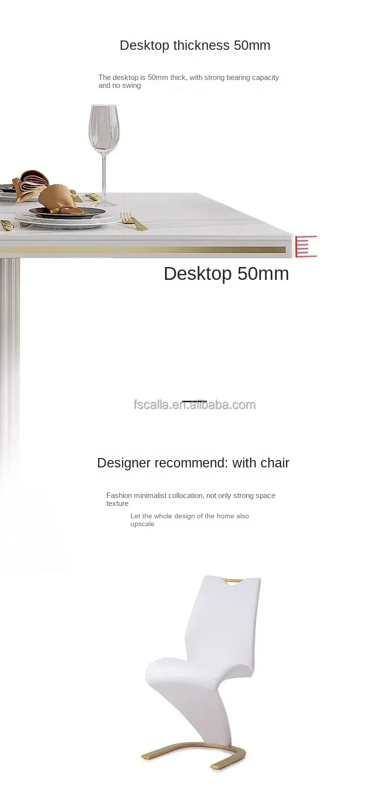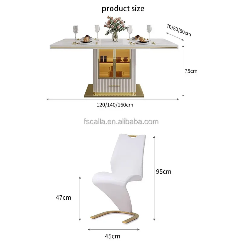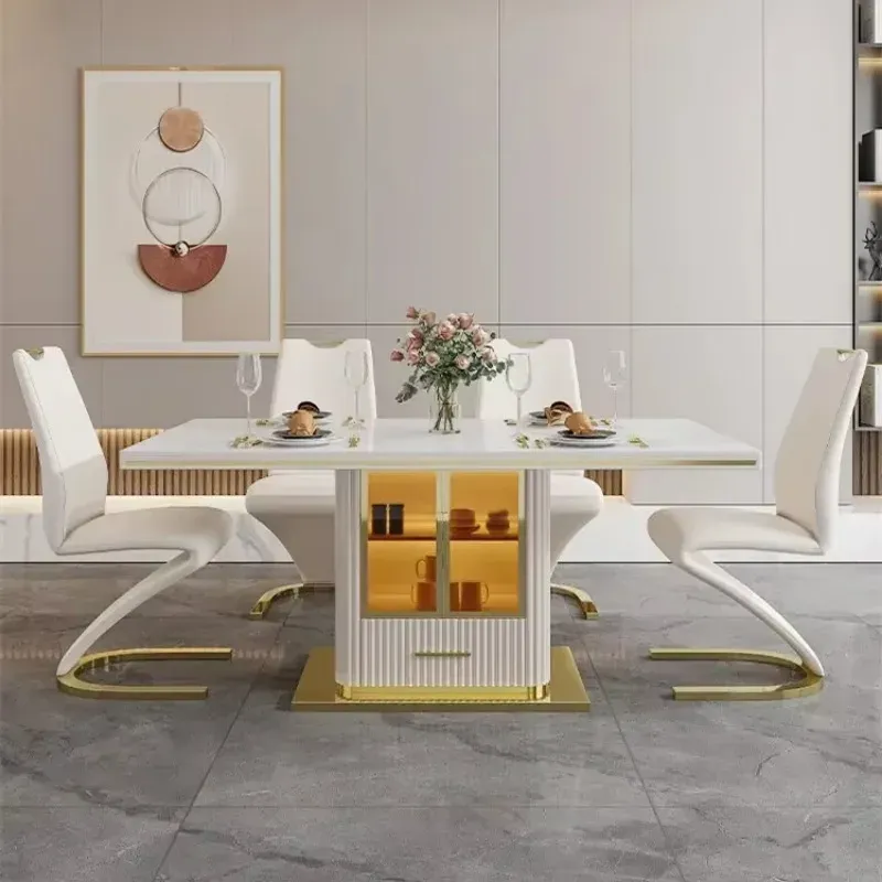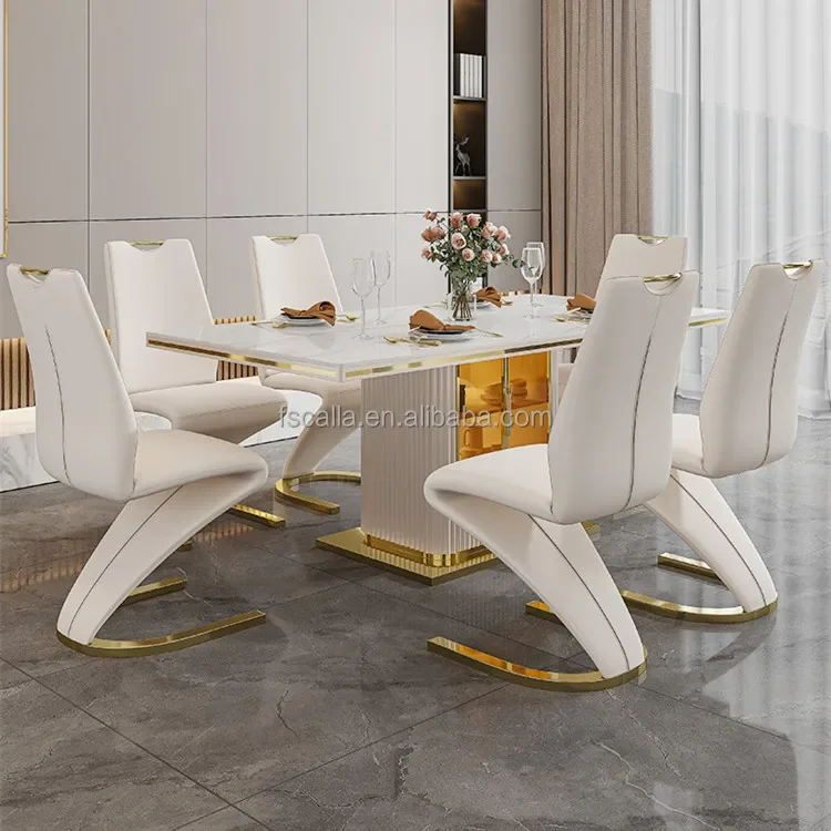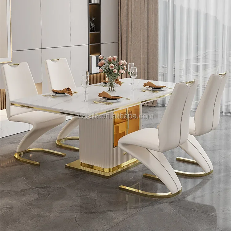 Luxury Slate Marble Modern Stainless Steel Rectangular White Dining Room Table Set with 6 Seater Restaurant 4 Chair Furniture