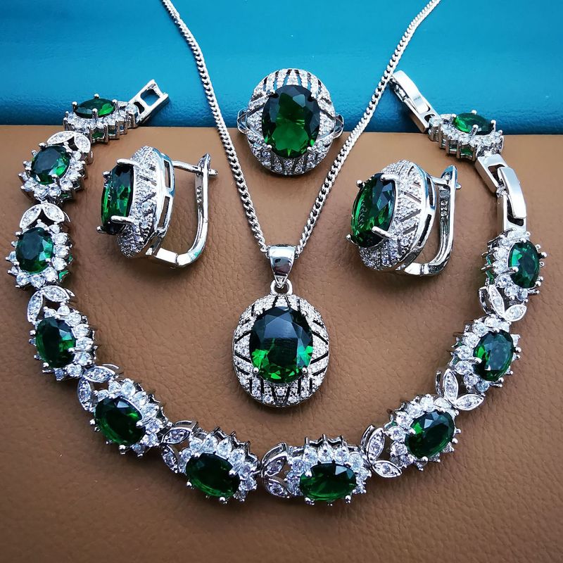 Luxury Temperament Wild Jewelry Suit Green Ring Size 9