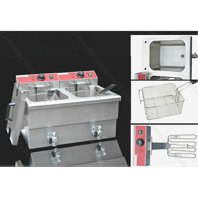 1.Double Tank Electric Deep Fryer features stainless steel construction and drainage faucet.