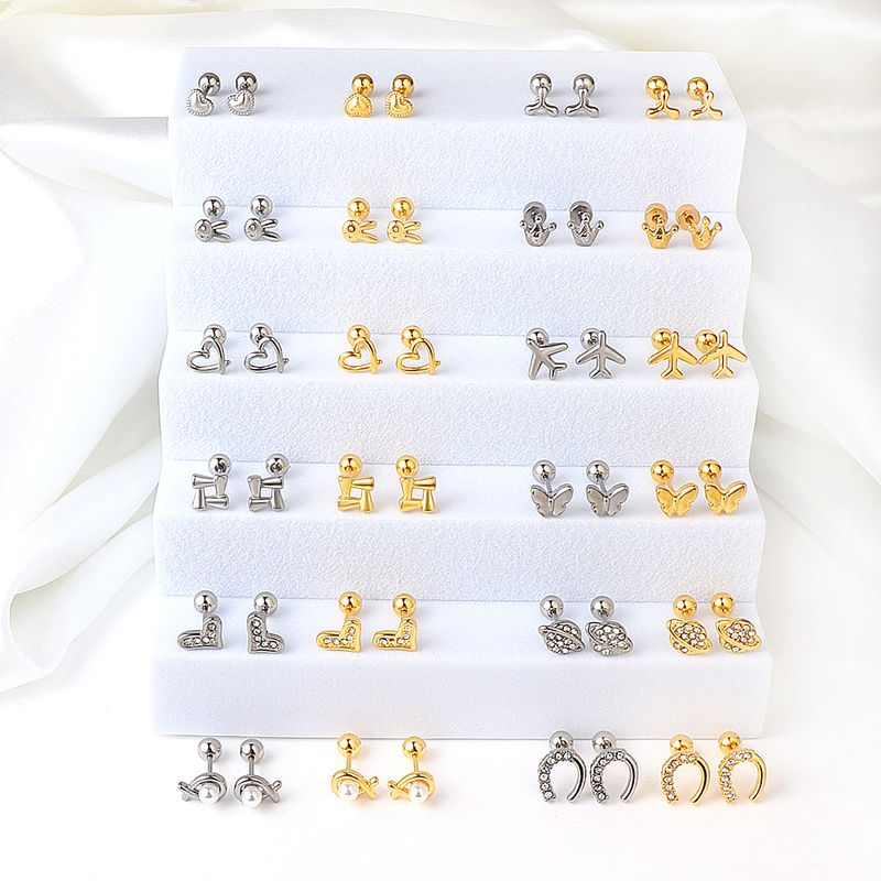 LUXUSTEEL Mini Cute Stainless Steel Stud Earrings Women Girls Heart Butterfly Rabbit Helix Ear Cartilage Piercing Jewelry Gifts