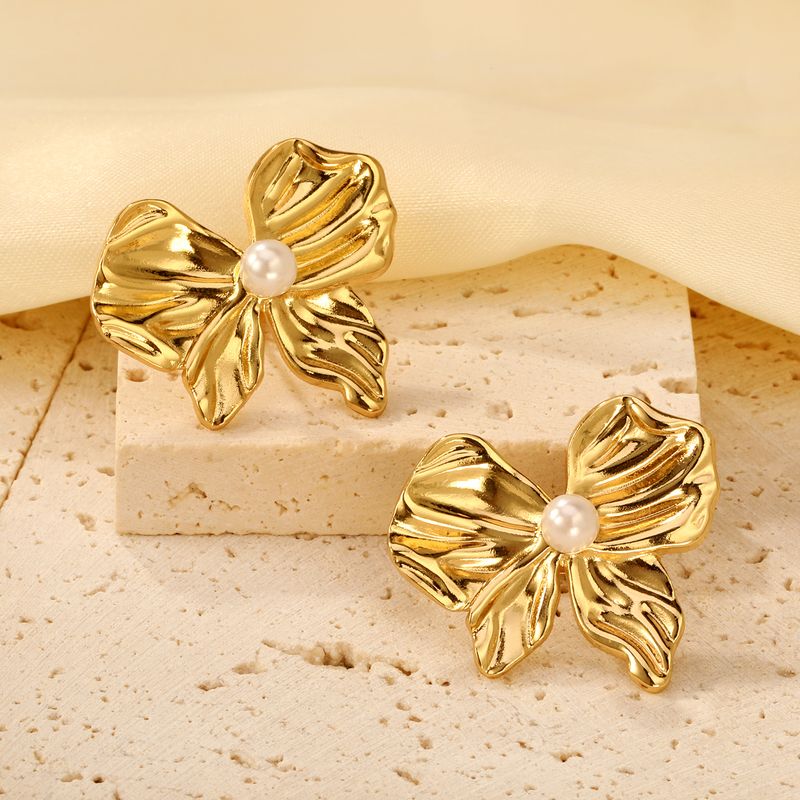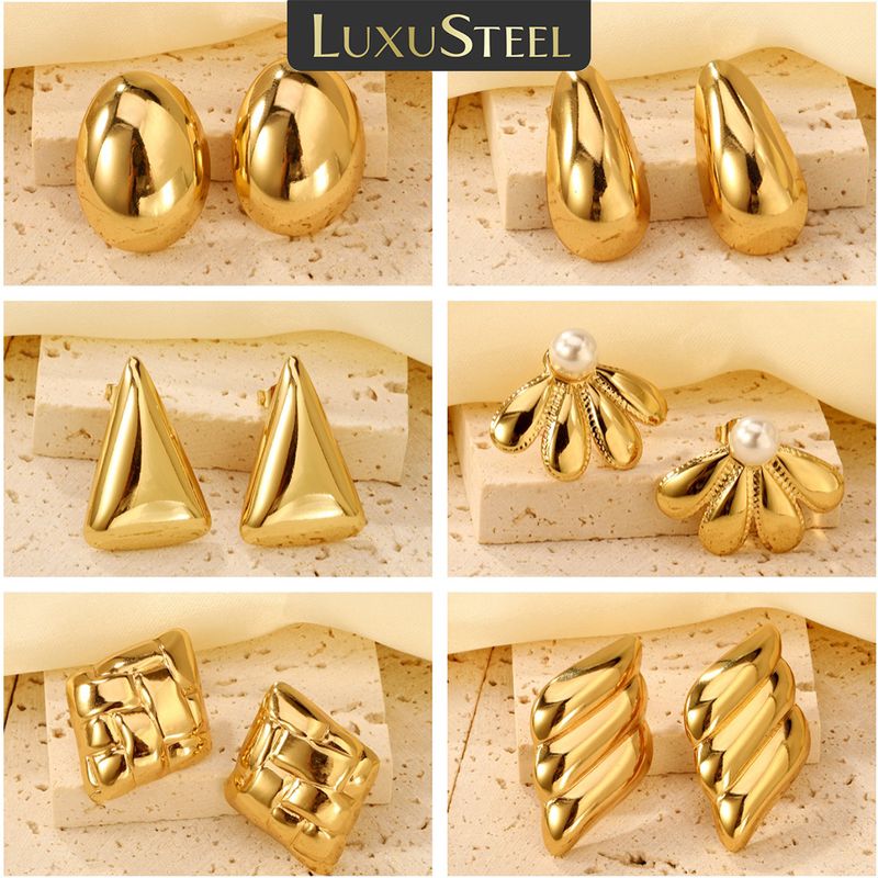 LUXUSTEEL Shell Water Drop Golden Imitaiton Pearl Women Stud Earrings Stainless Steel Heart Female Earring Elegant Jewelry Gifts