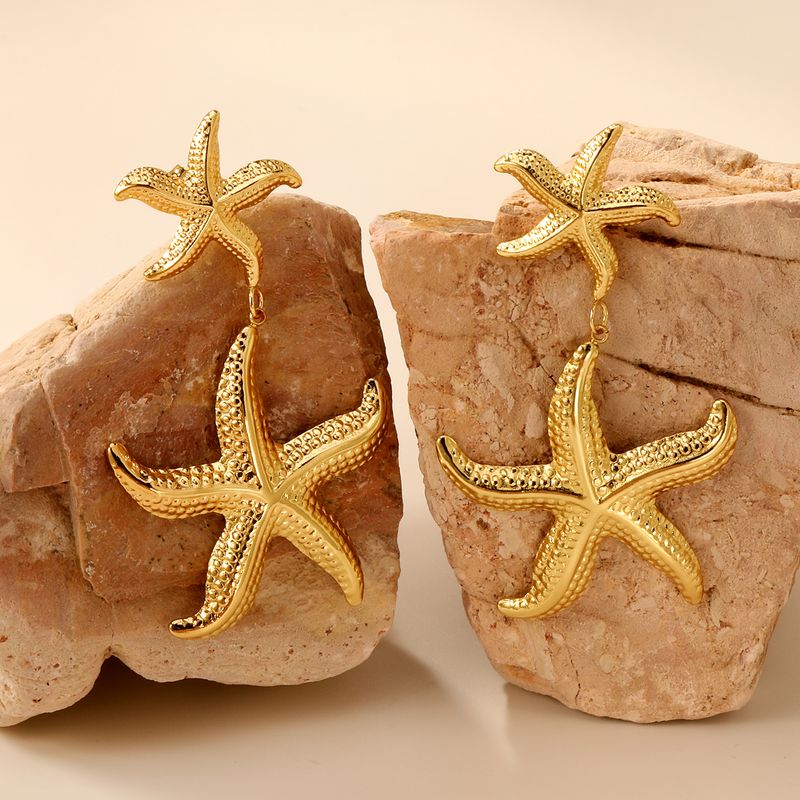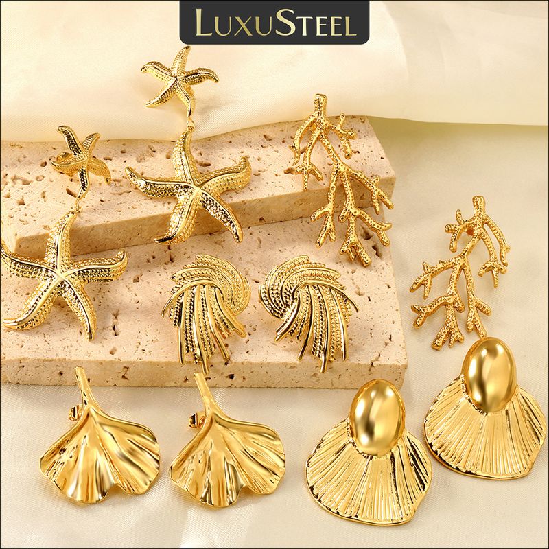LUXUSTEEL Stainless Steel Starfish Tree of Life Drop Stud Earrings for Women Shell Shape Ginkgo Leaf Female Earring Jewelry Gift