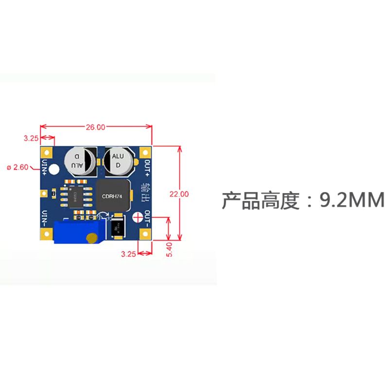 Small size,high power and high withstand voltage. Compared with the commonly used 7015 module in the market,the power is much larger. The maximum limit of 7015 is 7W and the maximum current is 0.8A The maximum current of this module is 1.5A,and the power will be different according to the output voltage. Tens of Watts are OK (the higher the voltage,the greater the power). The output voltage range is also much higher than the maximum 20V of 7015. When used under the same power,the efficiency should also be higher and the heating is lower.