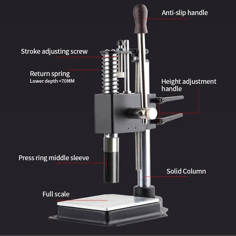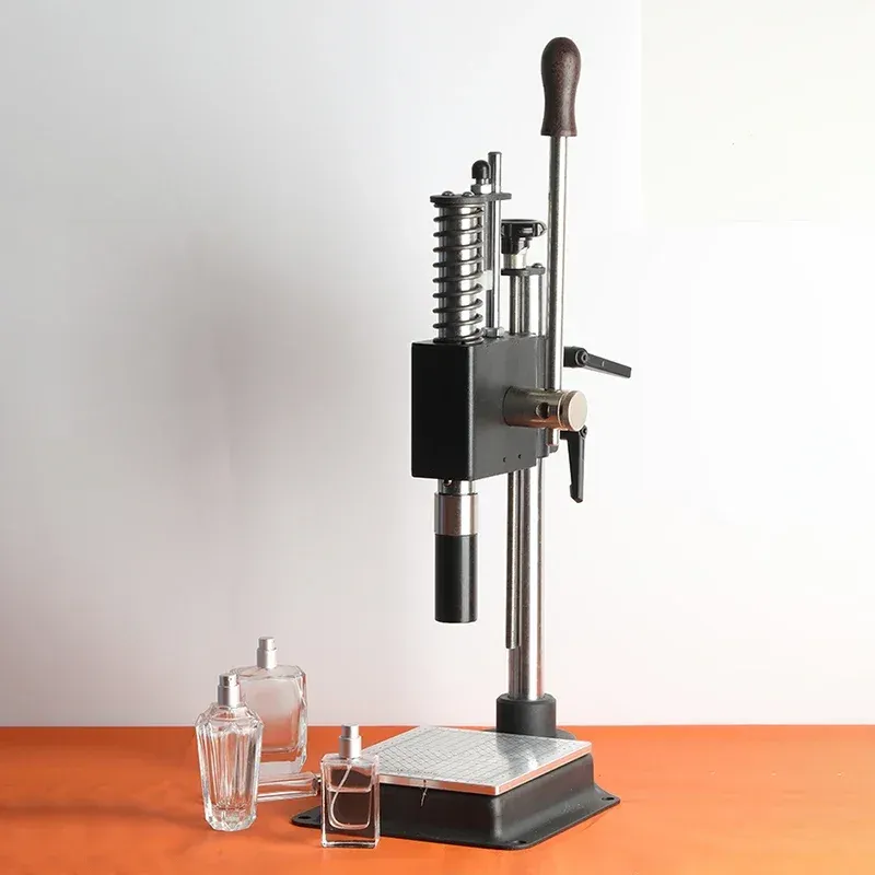 Perfume Bottle Capping Machine Tabletop Manual Pneumatic For Collar Ring Crimping Vial Top Pressing Pneumatic Glass Bottle Fragrance Scent