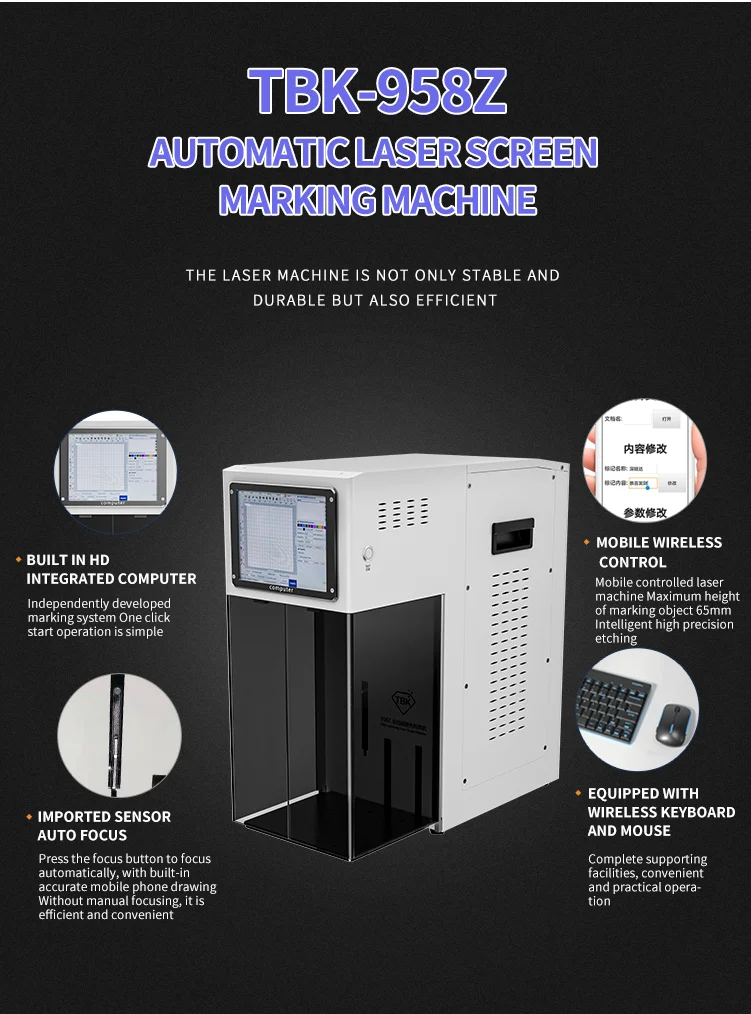 LY-TBK 958Z 3W UV Violet Laser Marking Machine For Mobile Phone LCD Screen Front And Back Glass Frame Separate Compatible With Metal Wood Leather Grass Plastic Engraving