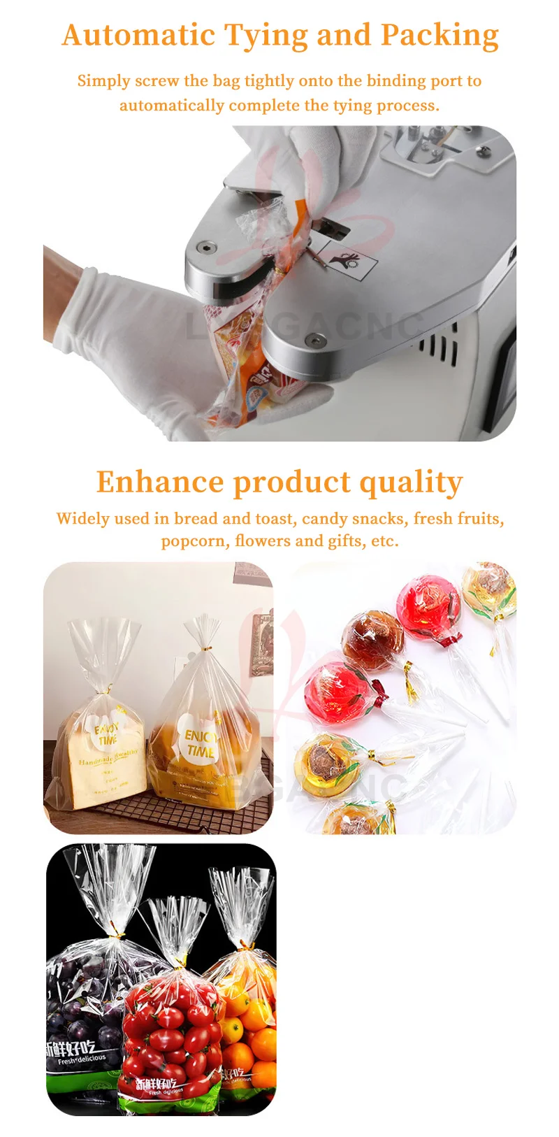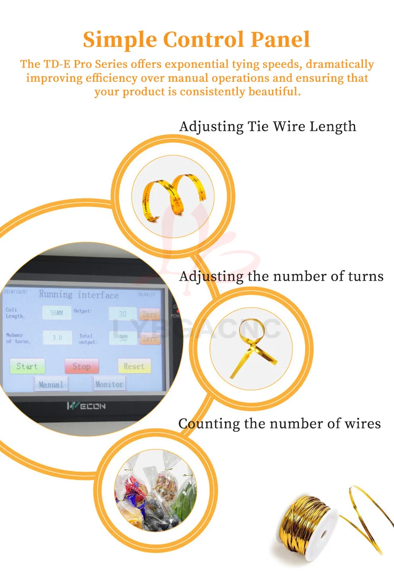 LY-TDE Pro Fully Automatic Gold Wire Tie Machine, Sealing Tool, Bread and Candy Tie Machine Plastic Bag Sealer PLC 600W