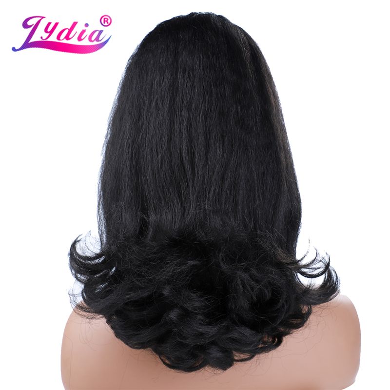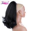 Lydia Tail Warping Synthetic 16" Kinky Straight Hairpiece With Two Plastic Comb Drawstring Ponytail Hair Extension Natural Black With Curly Tail