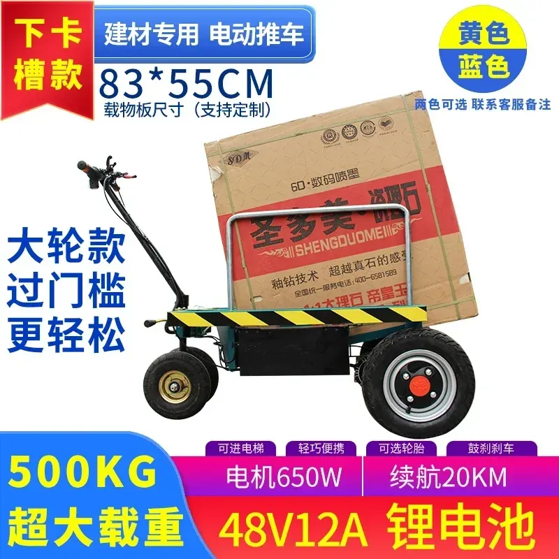 LYY Electric Folding Flatbed Cart for Transporting Tiles and Building Materials, Hand-Pulled Lightweight Portable Small Trailer
