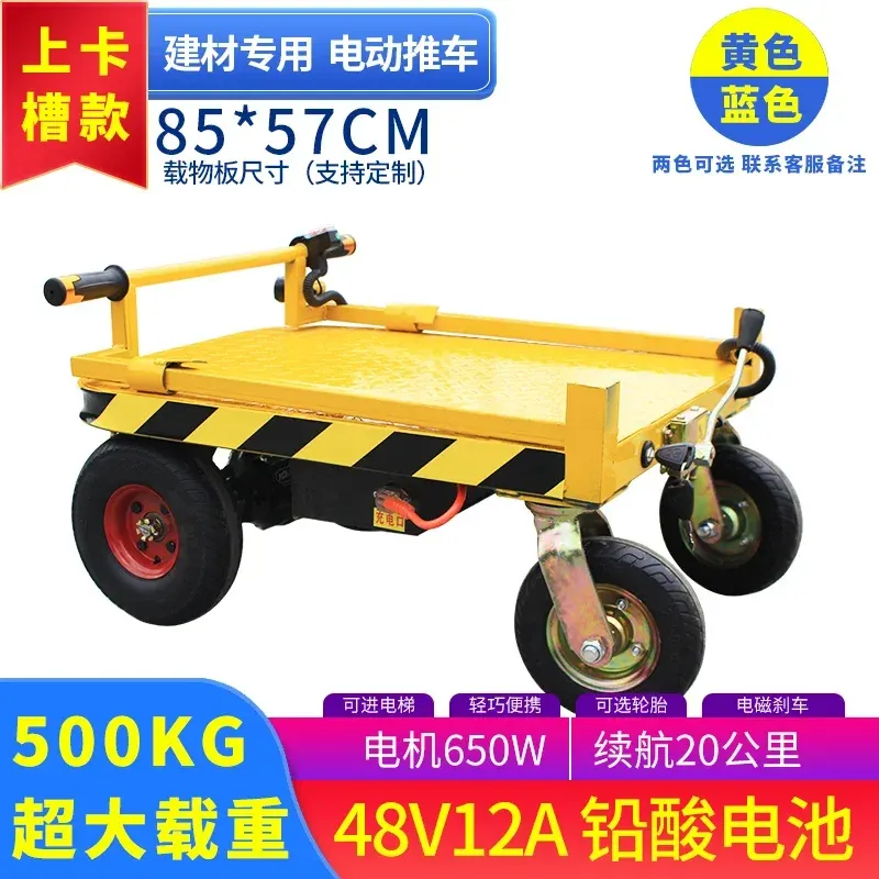 LYY Electric Folding Flatbed Cart for Transporting Tiles and Building Materials, Hand-Pulled Lightweight Portable Small Trailer