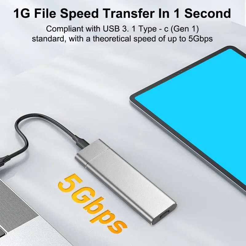 When using M.2 SATA SSD, the transmission rate is 5Gbps, and the reading and writing speed is 450MB/s.