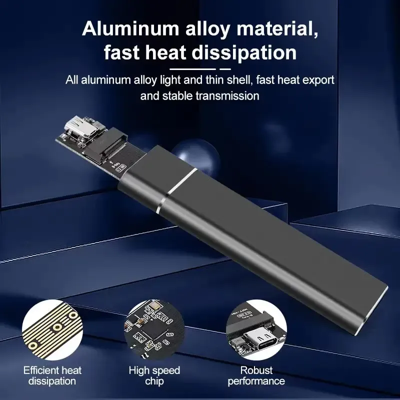 A:SSDs generate heat as they read and write at high speeds. The aluminum case of this product effectively transfers heat throughout the case, quickly releasing the high temperatures generated by NGFF SSDs when they are operating.