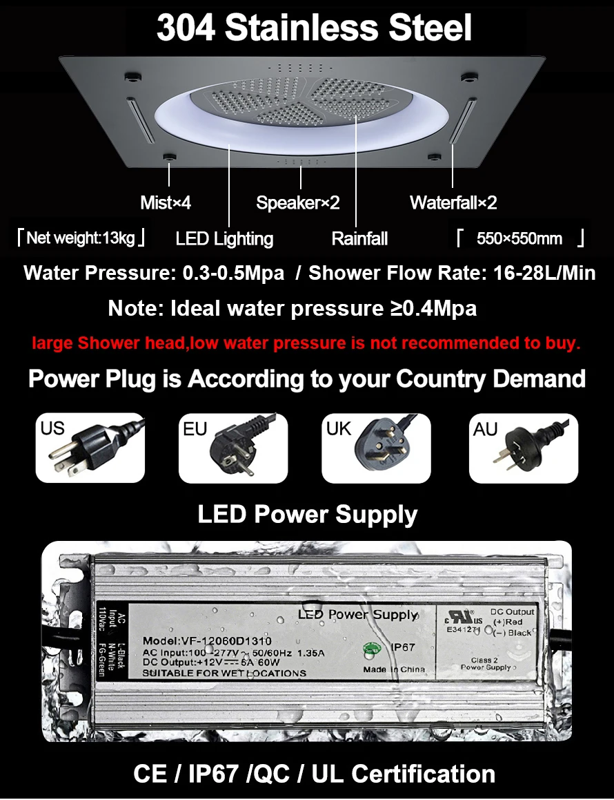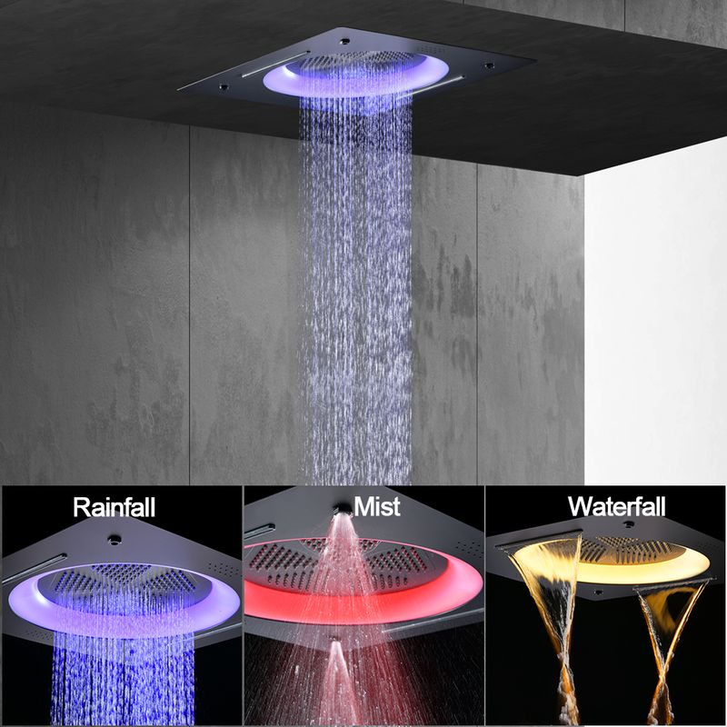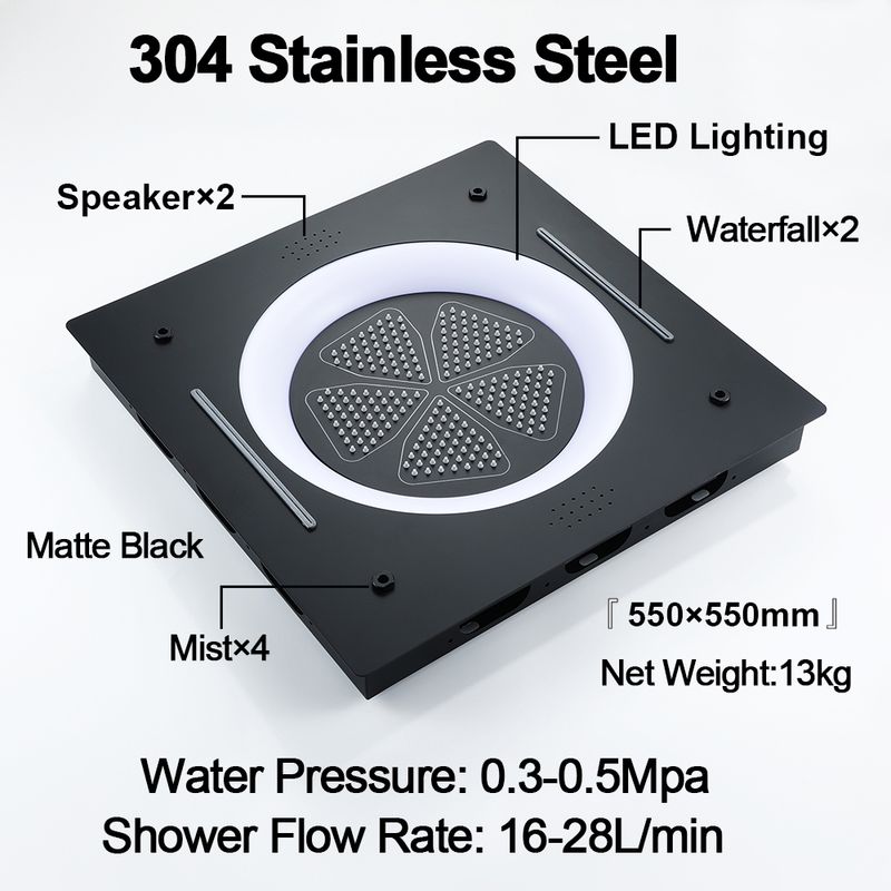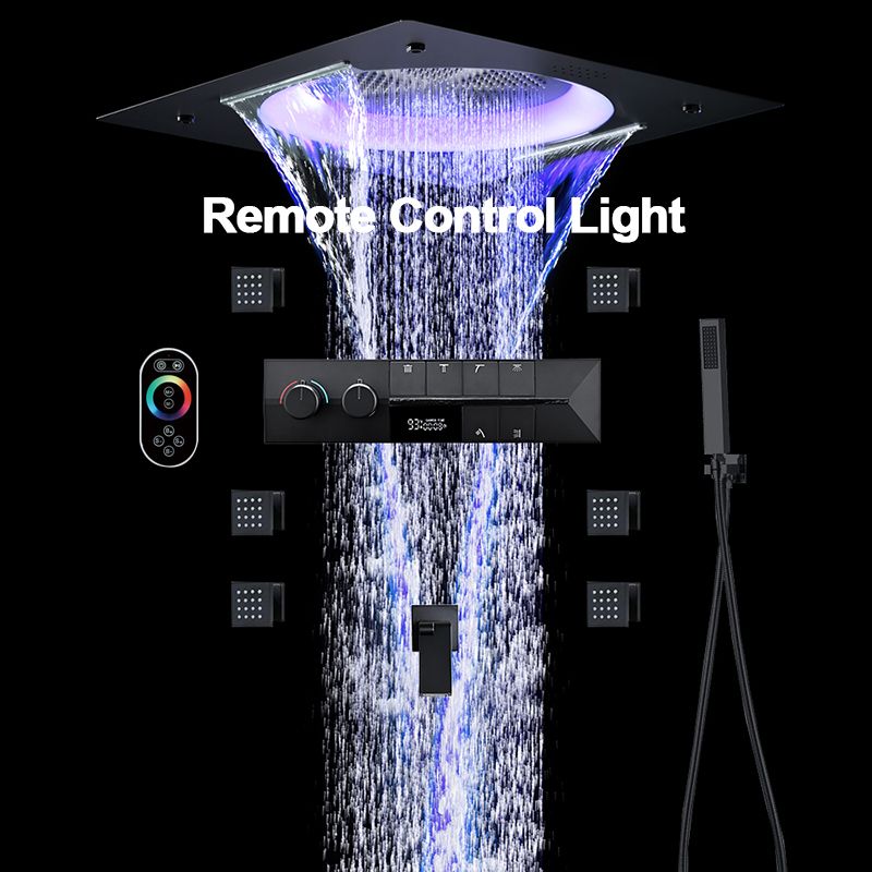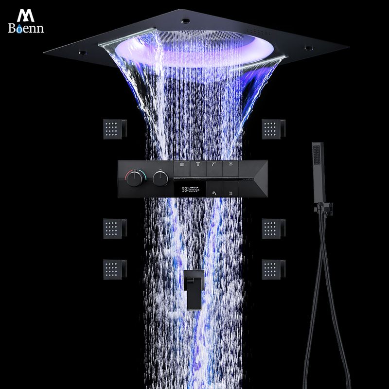 M Boenn High-Quality Black Shower System Bathroom Waterfall Faucet LED lighting Music Shower Head Large flow Thermostatic Mixer