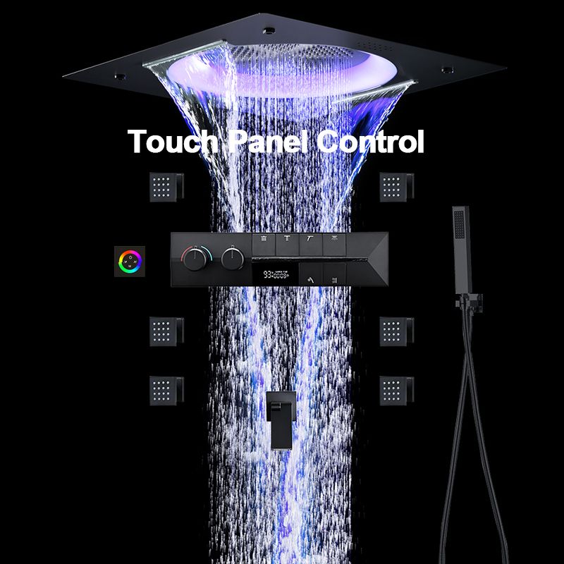 M Boenn High-Quality Black Shower System Bathroom Waterfall Faucet LED lighting Music Shower Head Large flow Thermostatic Mixer
