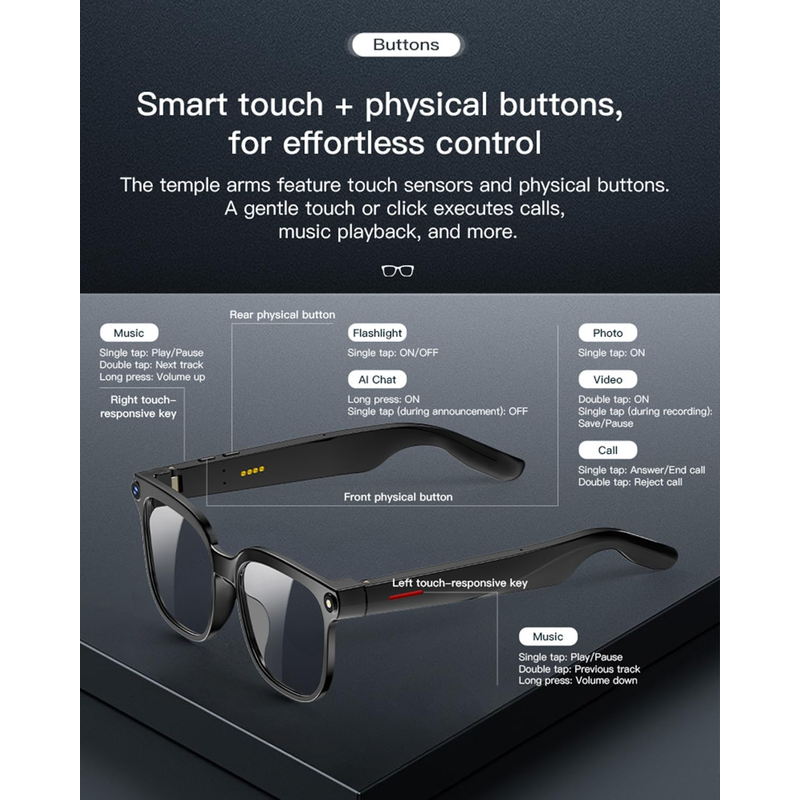 M02S AI Smart Glasses 1080P Video Photo Bluetooth Calls Music Playback WiFi Transfer IP65 Waterproof TR90 Lightweight Eyewear Se