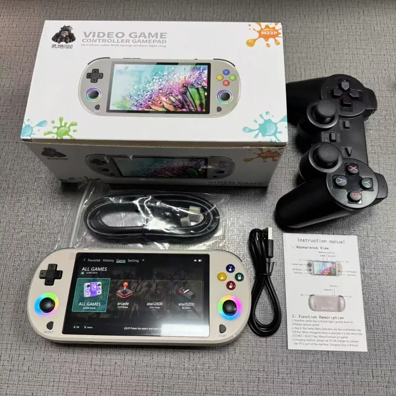 New 128GB M22 Pro Portable Pocket Retro Handheld Video Game Console 5.0 Inch IPS Screen 1920*1080 Display Support LINUX Emelec