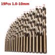 19pcs:1.0, 1.5, 2.0, 2.5, 3.0, 3.5, 4.0, 4.5, 5.0, 5.5, 6.0, 6.5, 7.0, 7.5, 8.0, 8.5, 9.0, 9.5, 10.0mm