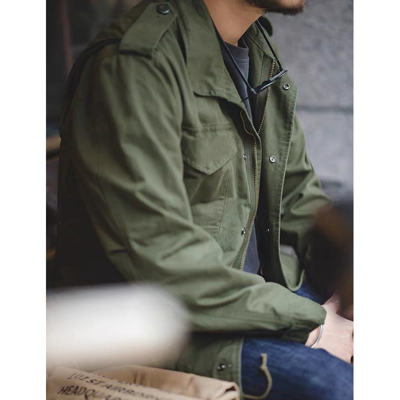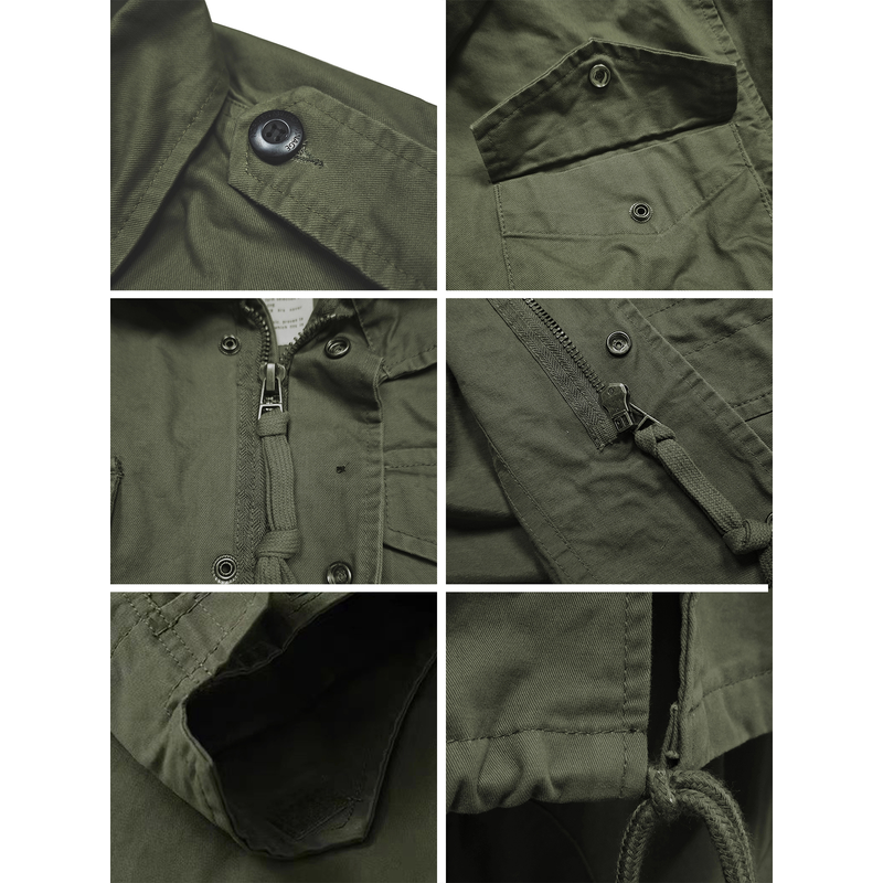 M65 Field Jacket, Men's Military Jacket, Retro Multi Pocket Collar Zipper Jacket, 100% Cotton