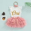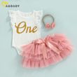 ma&baby 0-18M 1st Birthday Baby Girl Clothes Set Infant Newborn Toddler Letter Romper Ruffle Tulle Skirts Headband Outfit Summer