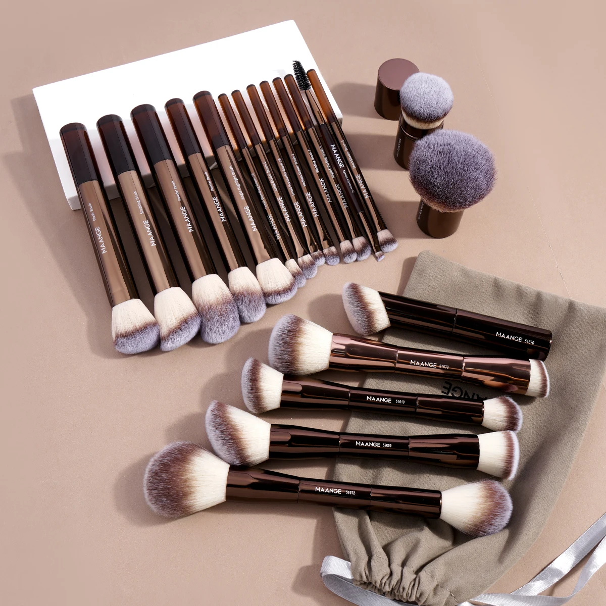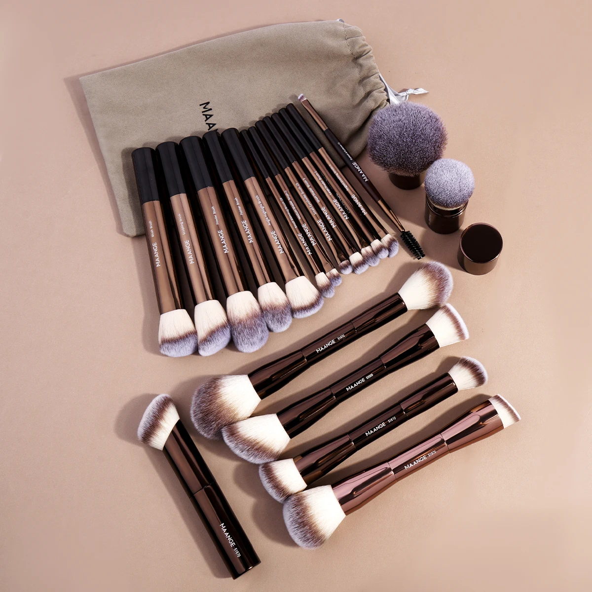 MAANGE 20PCS Makeup Brush Set Double Ended Foundation Contour Blush Eyes Brush Sot Fluffy Bristles Luxury Beauty Tools with Bag