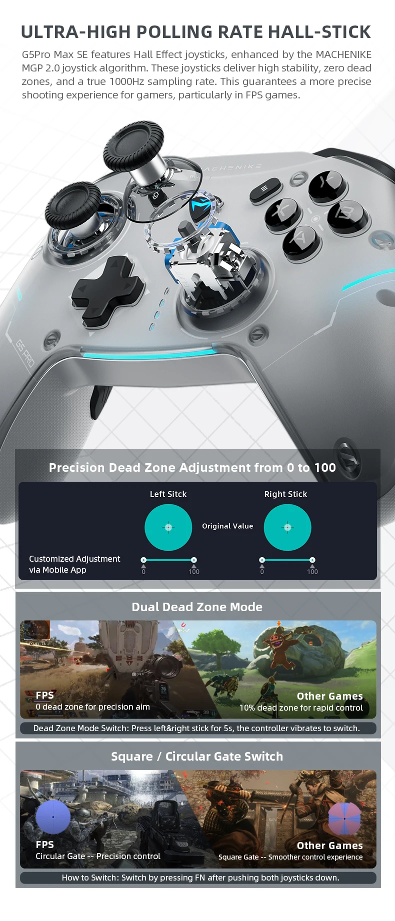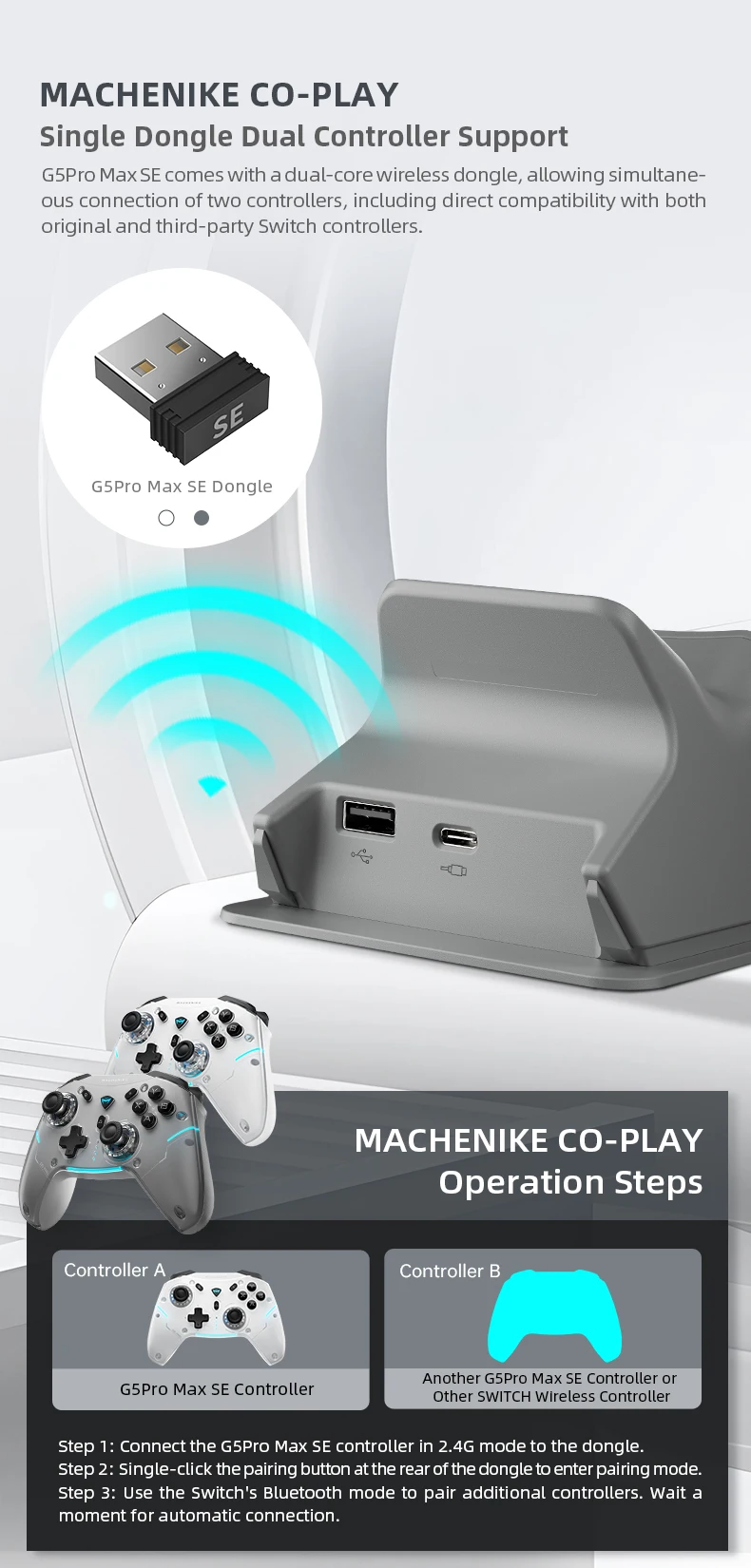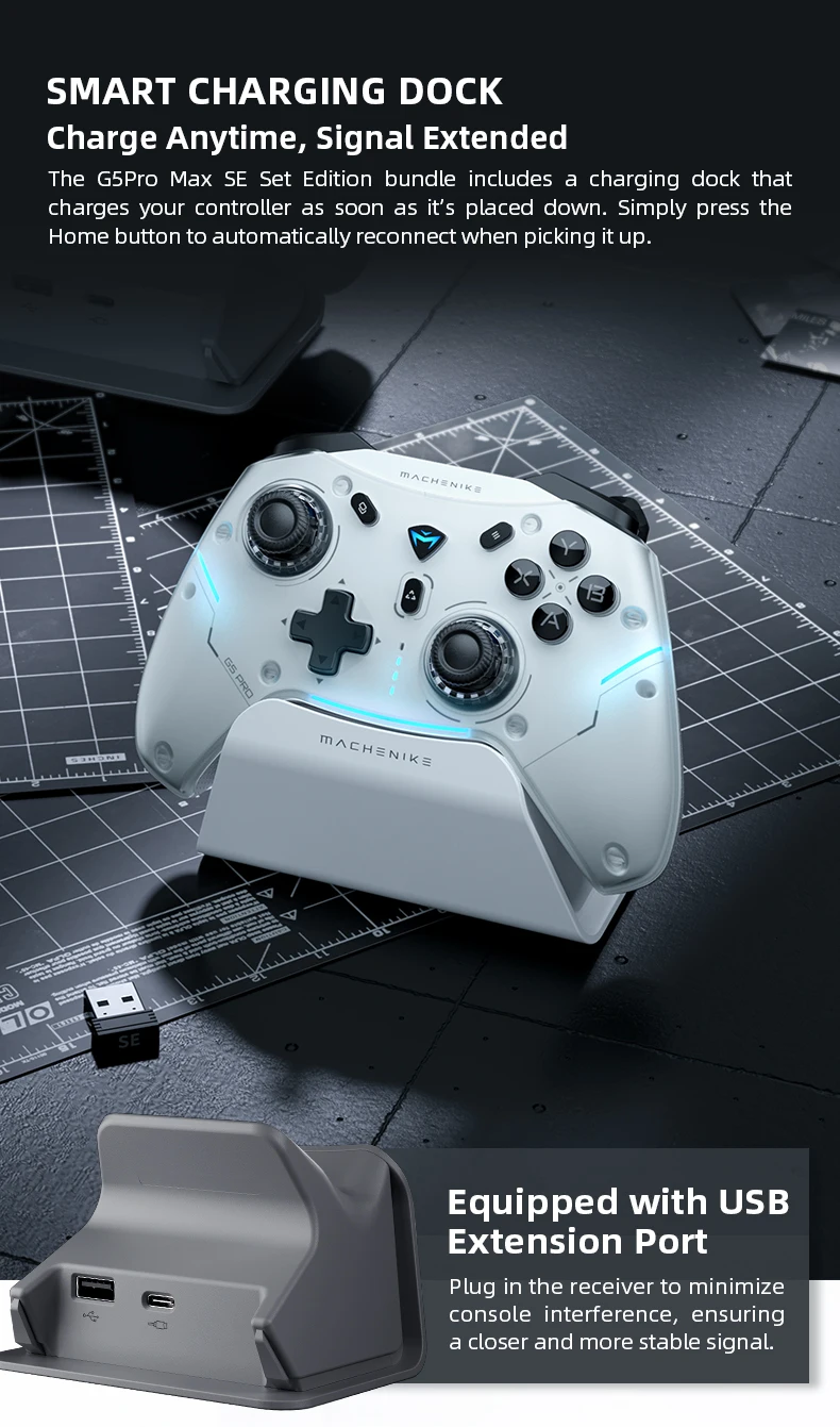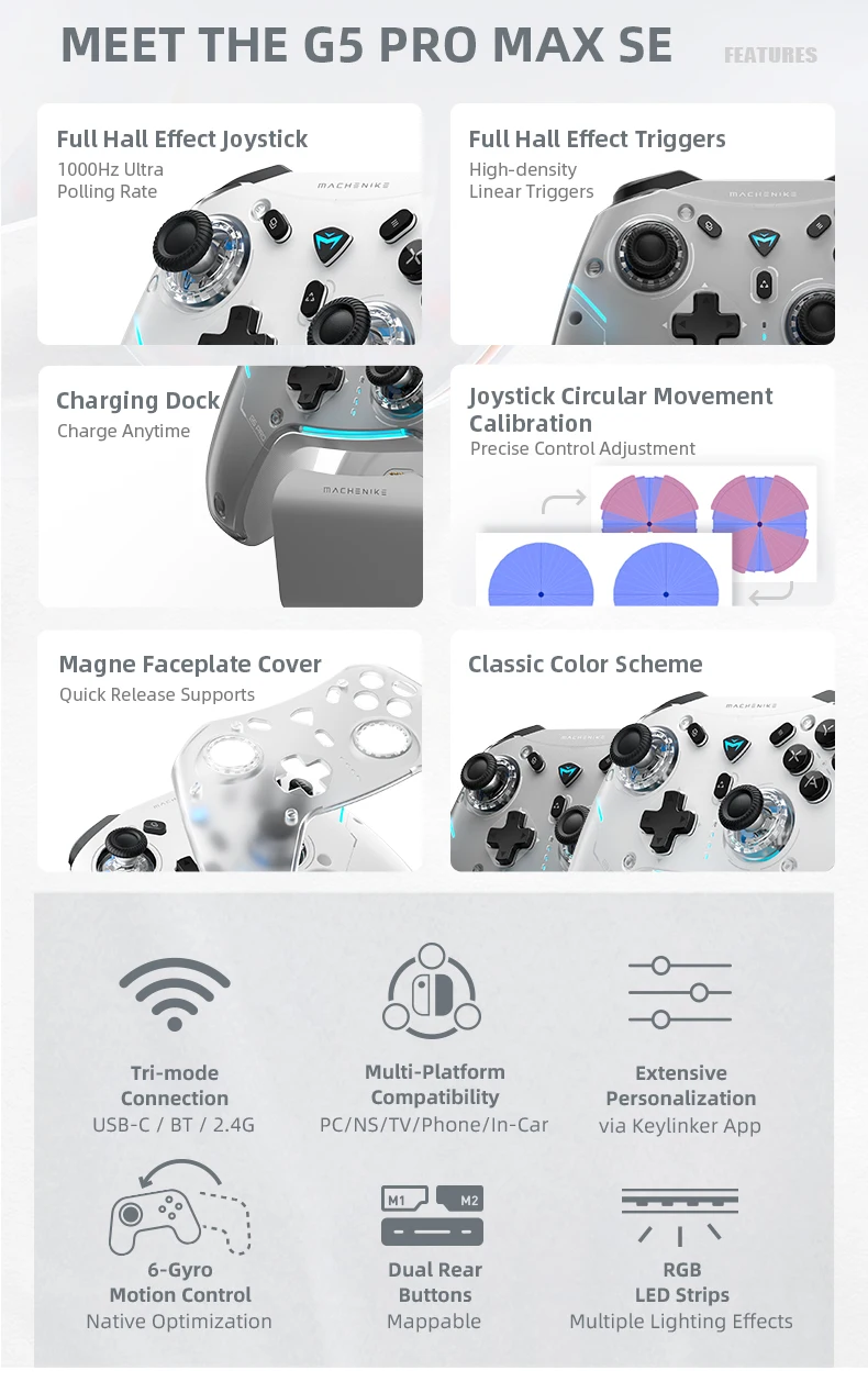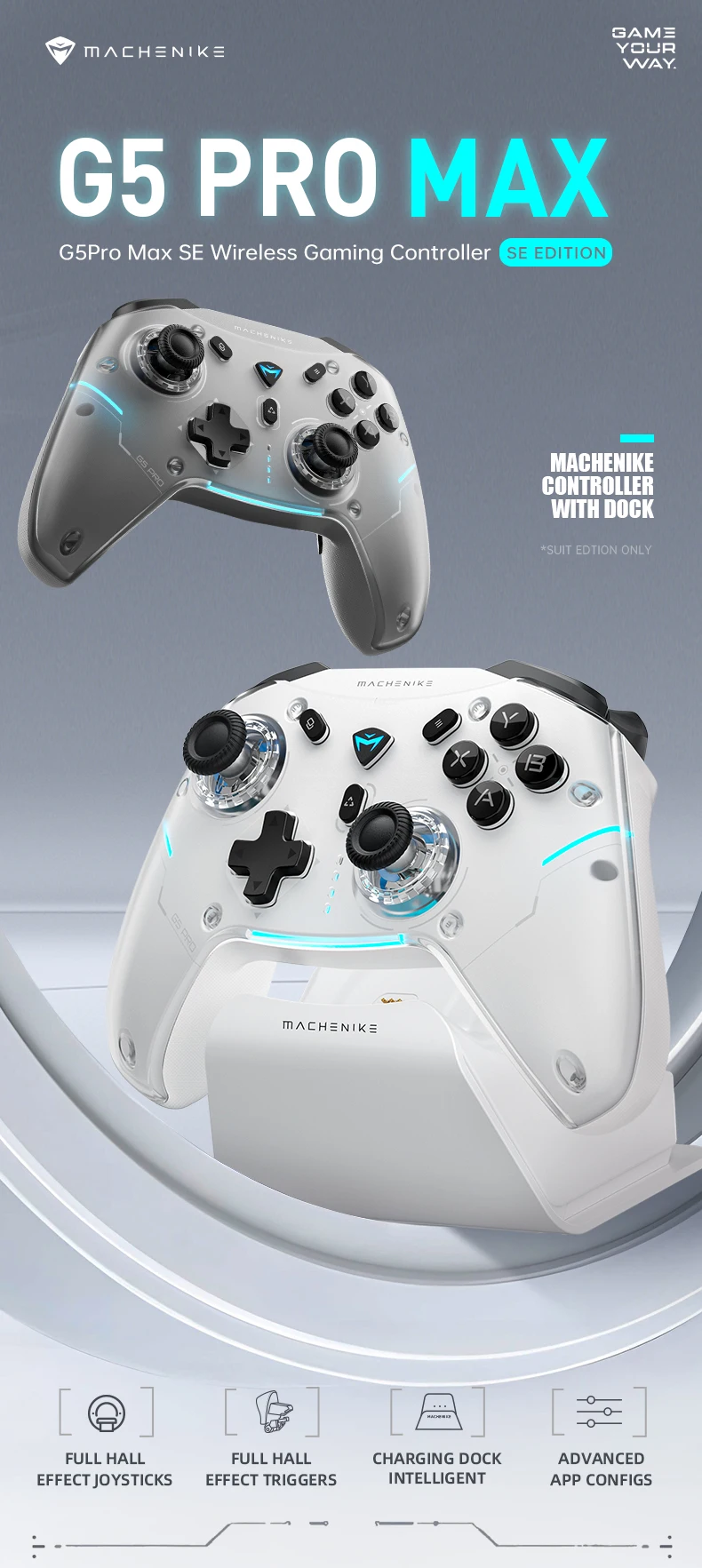 MACHENIKE G5Pro Max SE Gaming Controller With Charging Dock Optional Hall Effect Joysticks Triggers RGB Light Wireless Gamepad