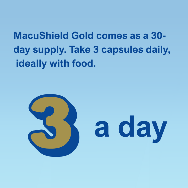 MacuShield Gold is an easy-to-take soft gel capsule for eye health* that should be taken with food o a meal.