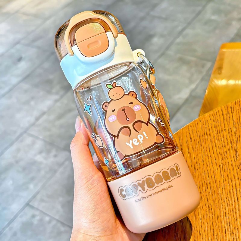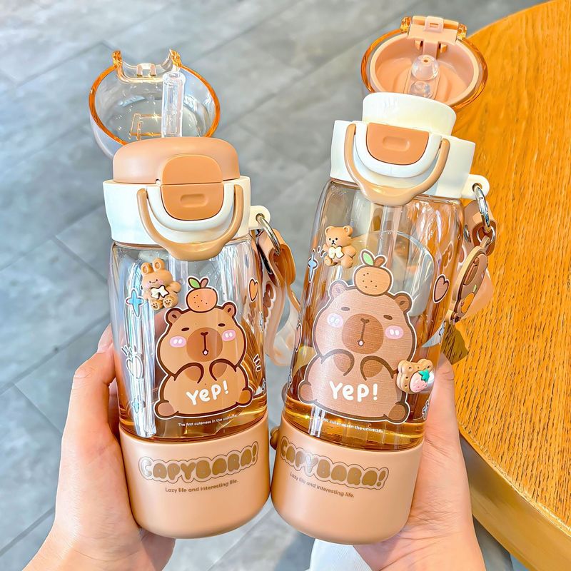 Portable Spring Lid Drink Cup With Straw Capybara Creative Cartoon Drinkware Double Opening Plastic Kids Capybara Bottle Gift