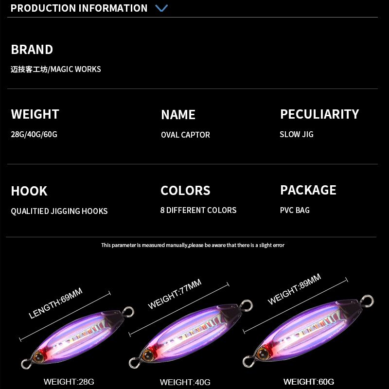 MAGIC WORKS Hot Oval Slow Jig Fishing Lure Spoon 28g 40g 60g Saltwater Shore Metal Artificial Bait Sea Fishing Tackle Lures
