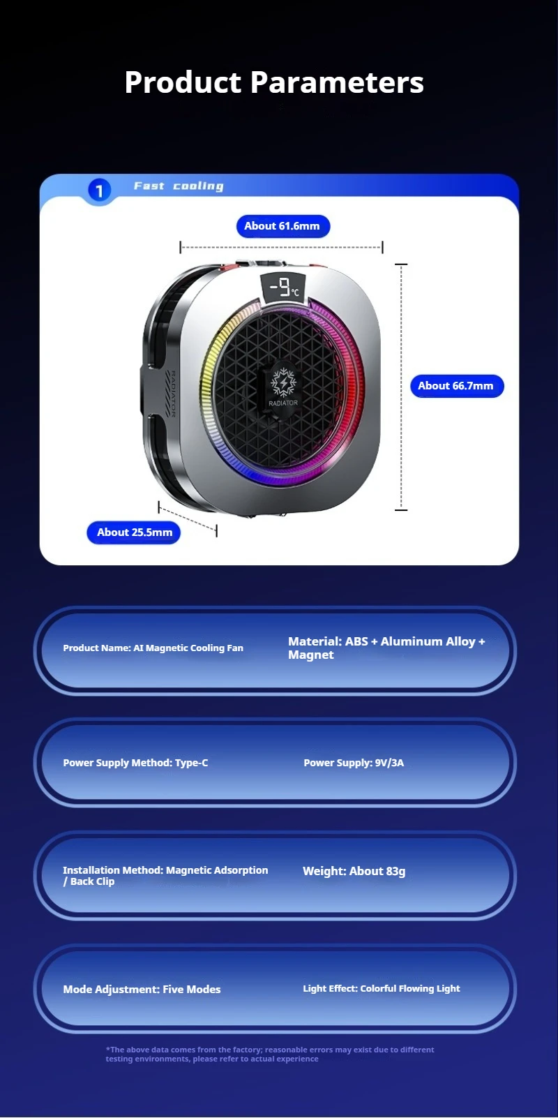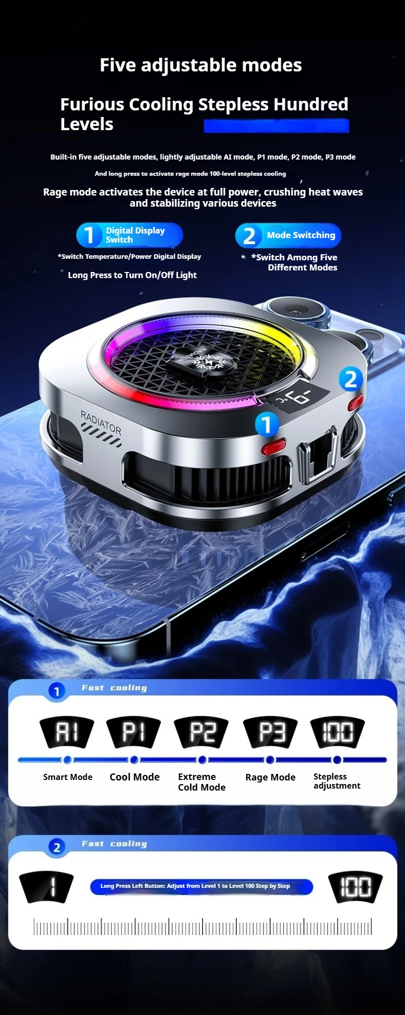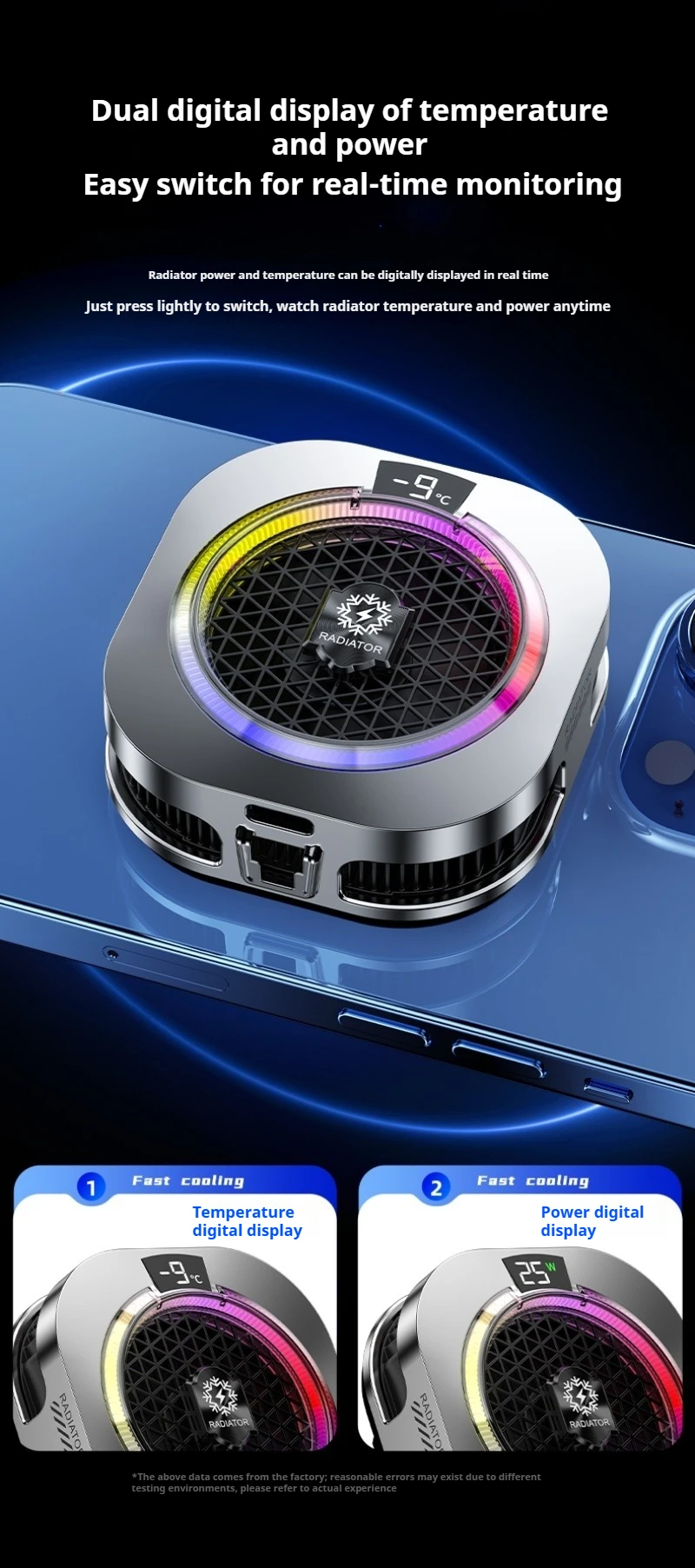 Magnetic Back Clip Dual-use Mobile Phone Radiator Digital Display Temperature Control AI Intelligent Gear Semiconductor Cooling