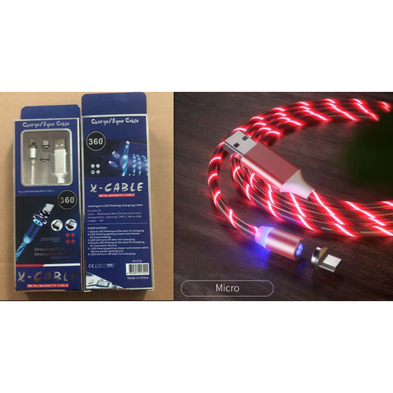 Magnetic Charging Cable Streamer Fast Charging Cable Lighting Micro USB Cable LED Magnet Charger Type-C Cable Colorful 2m Type c