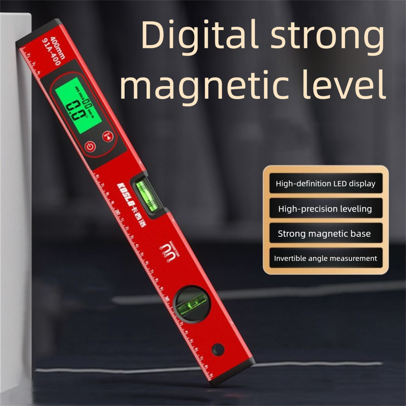 Color: Red Material: Aluminum Alloy,Plastic Power Supply: 2xAAA Battery(Battery Not Includes) Size: 30*4.9cm(11.81*1.93in),40*4.9cm(15.75*1.93in),50*4.9cm(19.69*1.93in) Package Includes: 1pc Digital Protractor 1. Magnetic adsorption: Strong magnetic adsorption design, firmly adsorbing iron metals. 2. Accurate horizontal measurement: Accurate horizontal measurement at angles of 0 ° -90 °, with an accuracy of 0.05 °. 3. Three line large horizontal bubble: double-layer sealed protective cover, more accurate horizontal measurement 4. High flatness anti slip: more accurate measurement, anti slip and wear-resistant.
