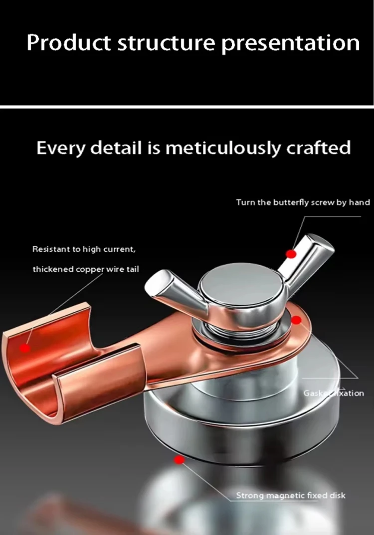 The device features a user-friendly design, making it easy to clip onto ground wires, thus simplifying the welding process.