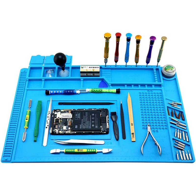 Magnetic Mat Silicone Work Mat Soldering Station Mat Heat Resistant 932°F Anti-Static for Electronic Phone Laptop Watch Repair