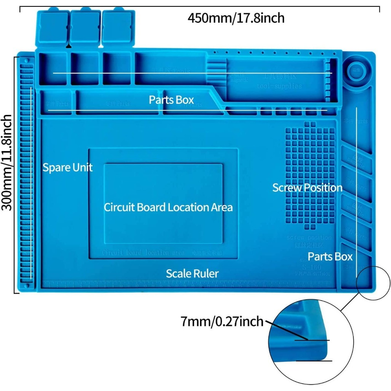 • 【ANTI-SLIP & ANTI-STATIC / EASY CLEAN】Adopt anti-slip design both of surface and back, and it is static-free making your repair work easy. Soft silicone material is very easy to clean and roll-up for convenient storage.