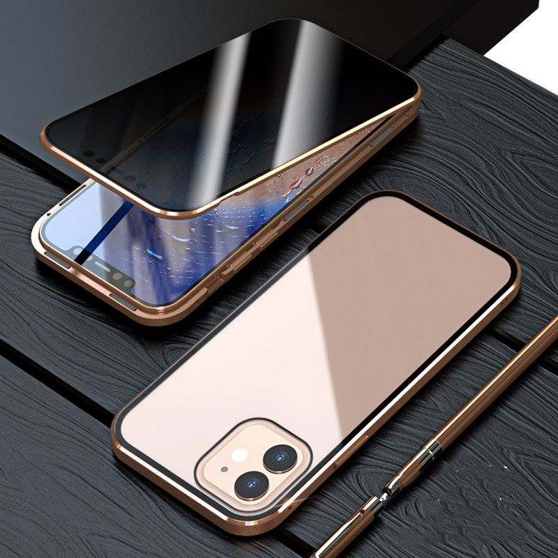 Magnetic Privacy Glass Case For X XS XR Anti-Spy 360 Protective Rose Gold Iphone12pro Max