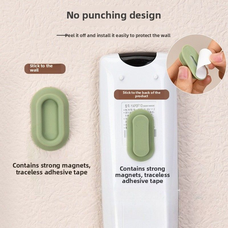 The magnetic remote control holder features a strong self-adhesive wall mount, ensuring secure attachment to any surface.