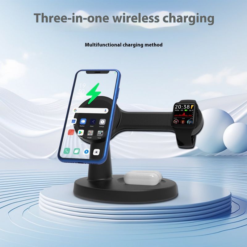 Magnetic Wireless Charger Electrical Desktop Bracket 15W Fast Charge Mobile Phone Headset Watch Wireless Charger Black