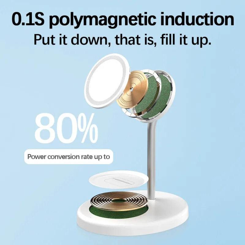The strong magnetic charging function of the 2-in-1 charging stand is directly suitable for the iPhone 15/14/13/12 series.