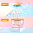 Sturdy: plastic and bamboo cotton swab dispenser, the container is washable when needed