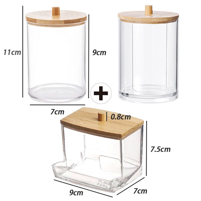 Sturdy: plastic and bamboo cotton swab dispenser, the container is washable when needed